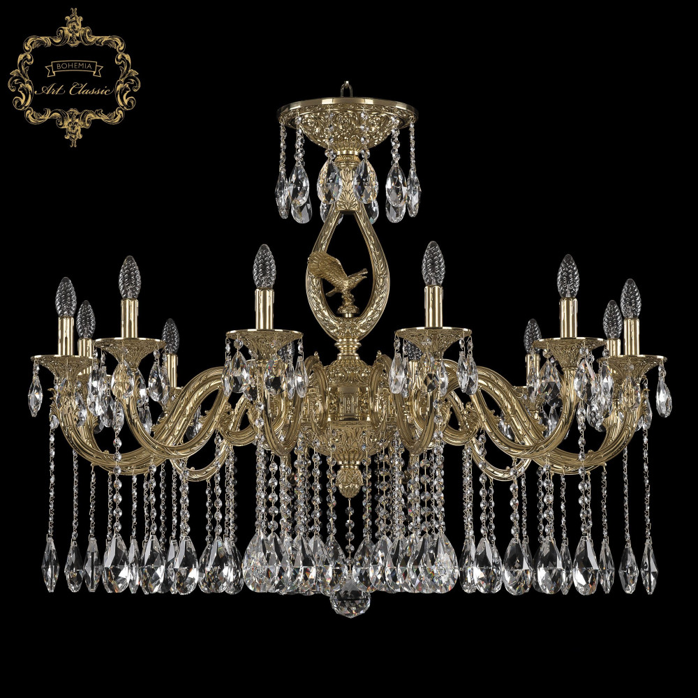 Осветительный прибор разработан в стиле Арт-Деко. Используются лампы с цоколем E14 мощностью 480 Вт, количеством 12 шт. Цвет модели 31.1401.12.360.A.G.FE1S: Прозрачный.