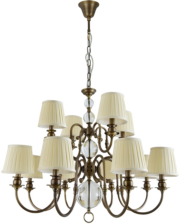 Осветительный прибор сделан в стиле Классический. Задействуются лампы цоколя E14 мощностью 480 Вт, количеством 12 ед.