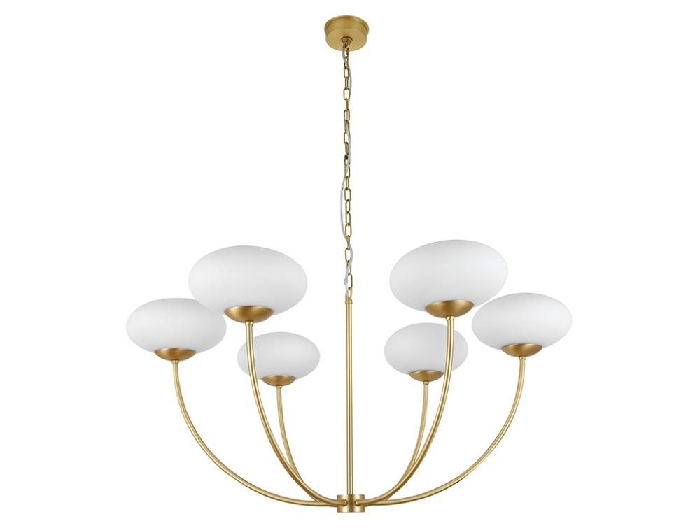 Осветительный прибор выполнен в стиле Модерн. Подходят лампы цоколя E14 мощностью 150 Вт, в количестве 6 шт. Основной цвет модели 3916/С brass: Белый.
