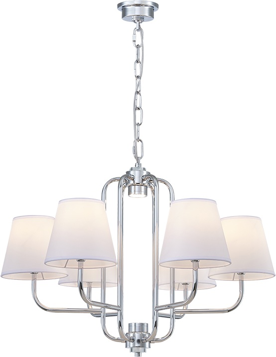 Осветительный прибор сделан в стиле Модерн. Используются лампочки цоколя E14 мощностью 245 Вт, в количестве 6 ед. Цвет модели 4646/С chrome: Белый.