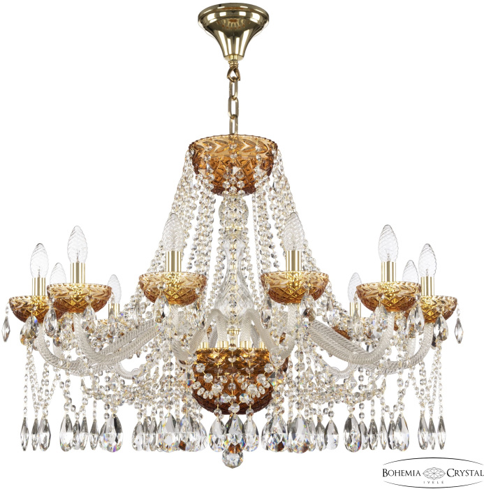 Люстра подвесная 5413/12/300 G Amber/M-1F производится брендом Bohemia Ivele из коллекции 5413. Габаритные параметры: высота 630 мм, диаметр 850 мм. Люстры Bohemia Ivele 5413/12/300 G Amber/M-1F выполнены из высококачественных и прочных материалов: Металл,Хрусталь, плафон - Без плафона.