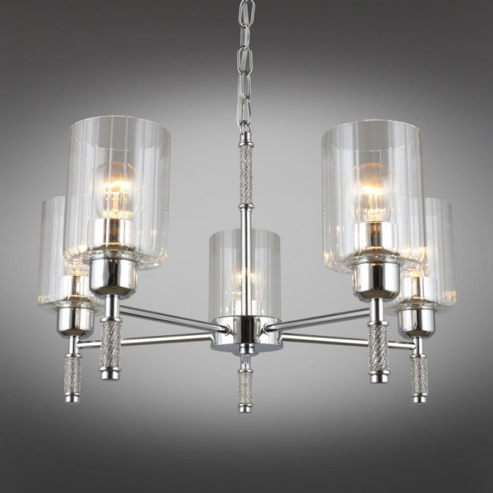 Осветительный прибор создан в стиле Современный. Применяются лампы с цоколем E27 мощностью 300 Вт, количеством 5 шт. Цвет модели OML-66503-05: Хром.