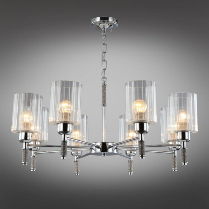 Осветительный прибор создан в стиле Современный. Подходят лампы с цоколем E27 мощностью 480 Вт, в количестве 8 ед. Цвет модели OML-66503-08: Хром.