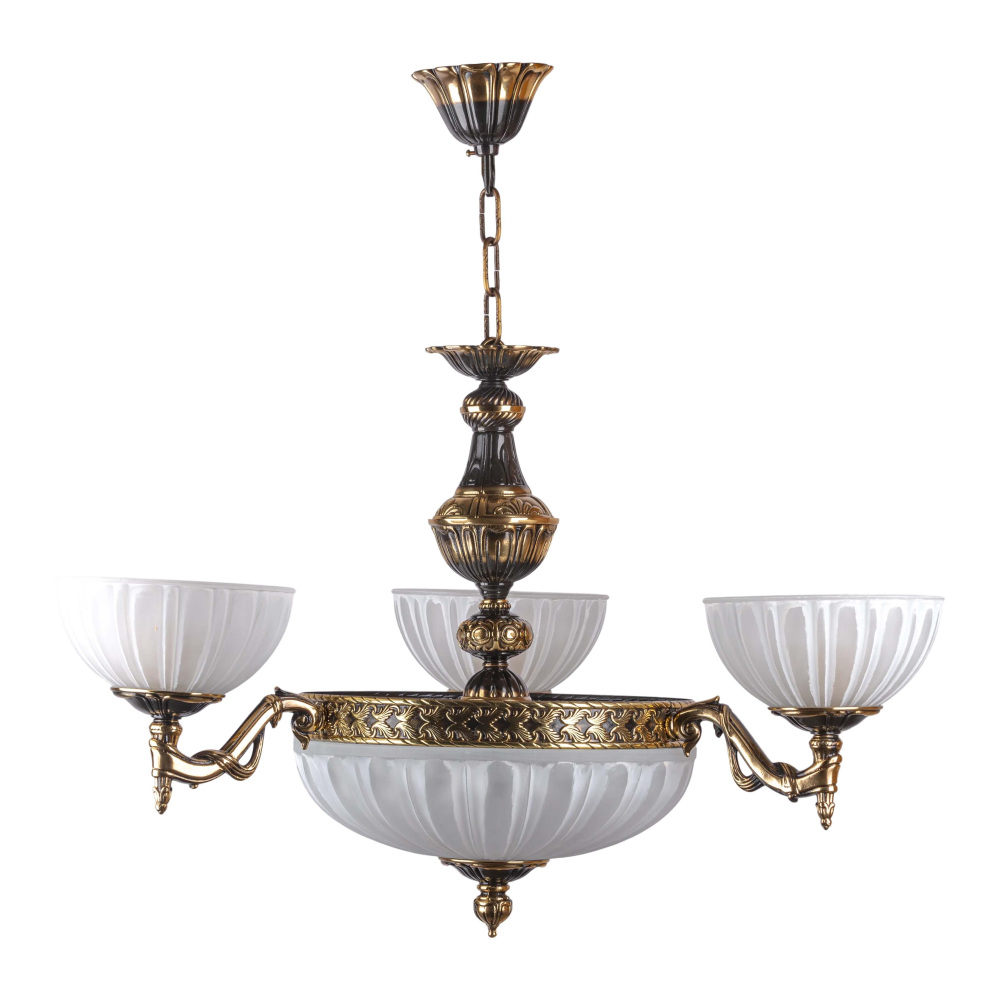 Люстра подвесная 7539/3 PB – это продукция бренда Ambiente. Габаритные параметры: высота 460 мм, диаметр 630 мм. Люстры Ambiente 7539/3 PB созданы с применением высококачественных и прочных материалов: латунь, плафон - стекло.