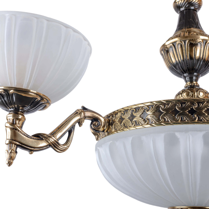 Осветительный прибор выполнен в стиле Классический. Используются лампочки цоколя E27 мощностью 180 Вт, количеством 6 шт.