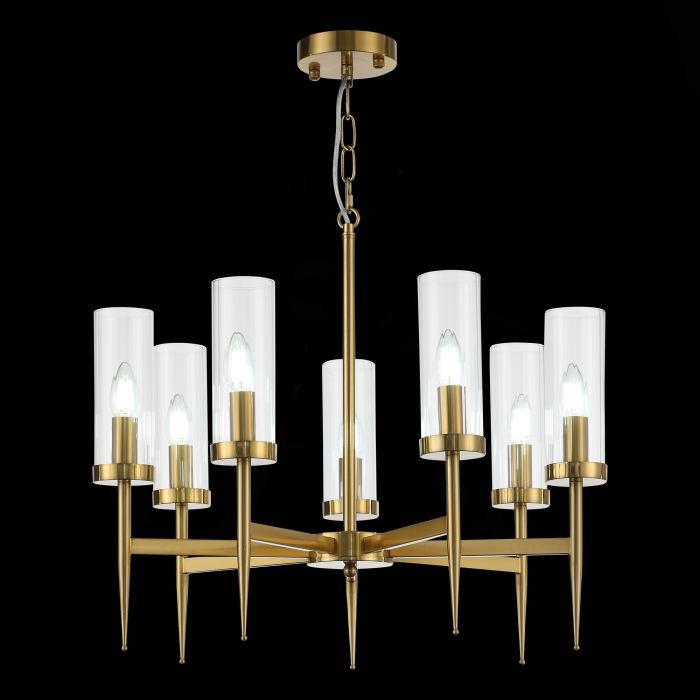 Осветительный прибор выполнен в стиле Американский. Используются лампочки цоколя E14 мощностью 420 Вт, количеством 7 шт. Цвет модели SL1159.303.07: Латунь.