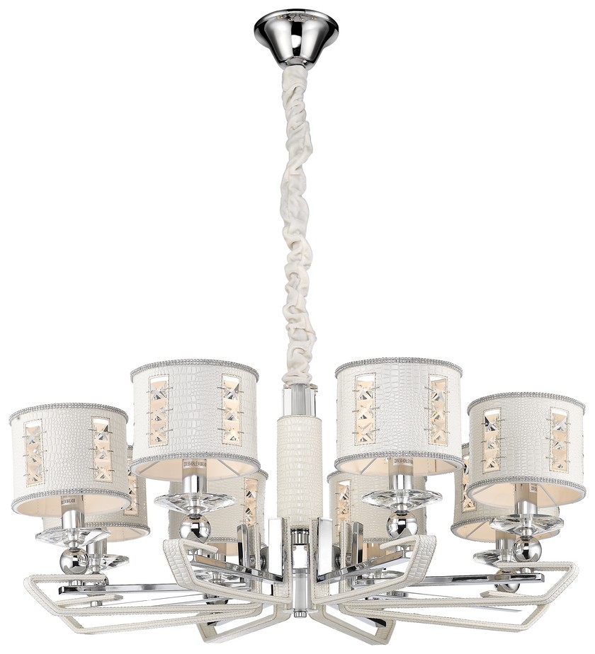 Осветительный прибор сделан в стиле Модерн. Используются лампочки цоколя E14 мощностью 320 Вт, в количестве 8 ед. Цвет модели WE393.08.003: Белый.