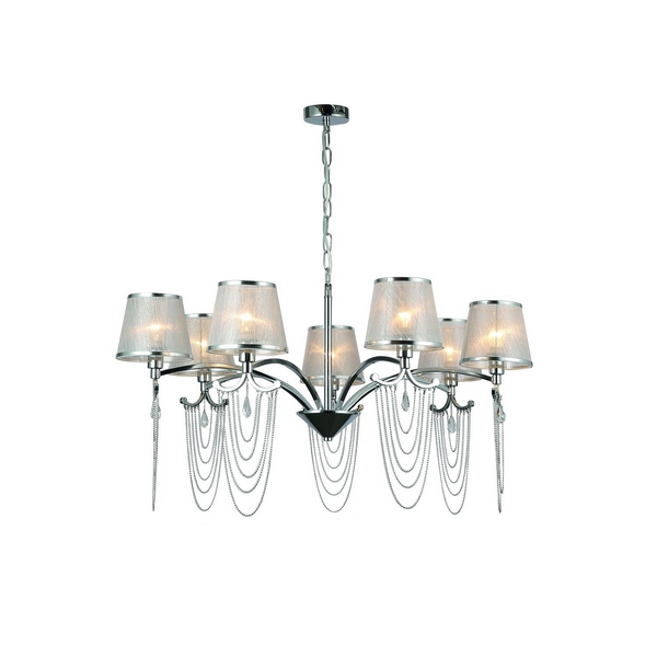 Осветительный прибор сделан в стиле Классический. Задействуются лампы цоколя E14 мощностью 280 Вт, количеством 7 ед. Основной цвет модели 2855-7P: Серый.