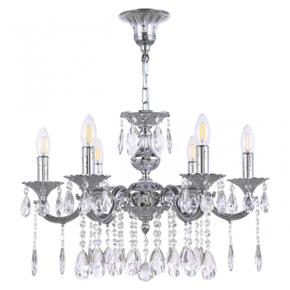 Осветительный прибор выполнен в стиле Классический. Применяются лампы цоколя E14 мощностью 240 Вт, в количестве 6 шт.