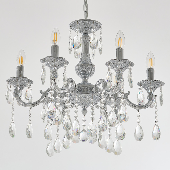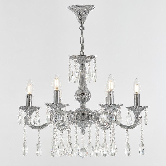 Осветительный прибор создан в стиле Классический. Подходят лампы цоколя E14 мощностью 240 Вт, в количестве 6 шт.