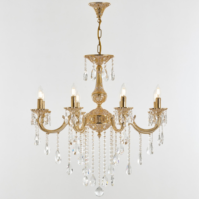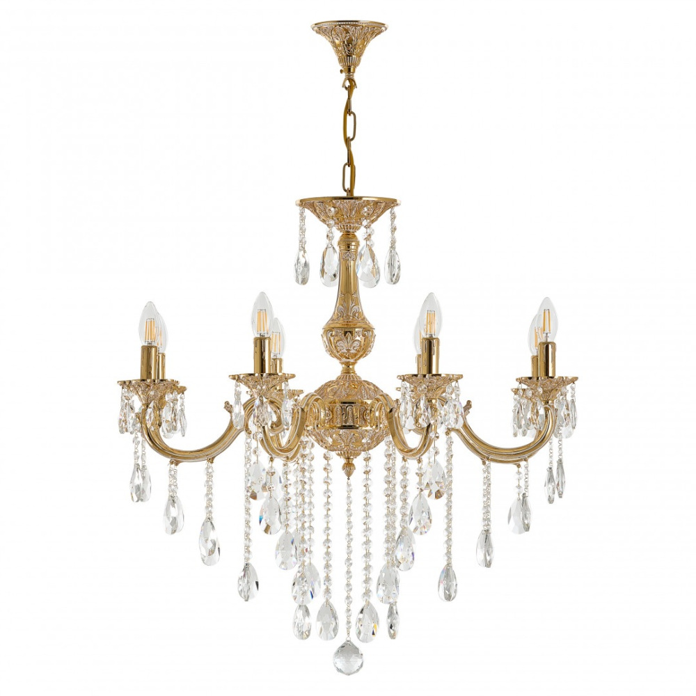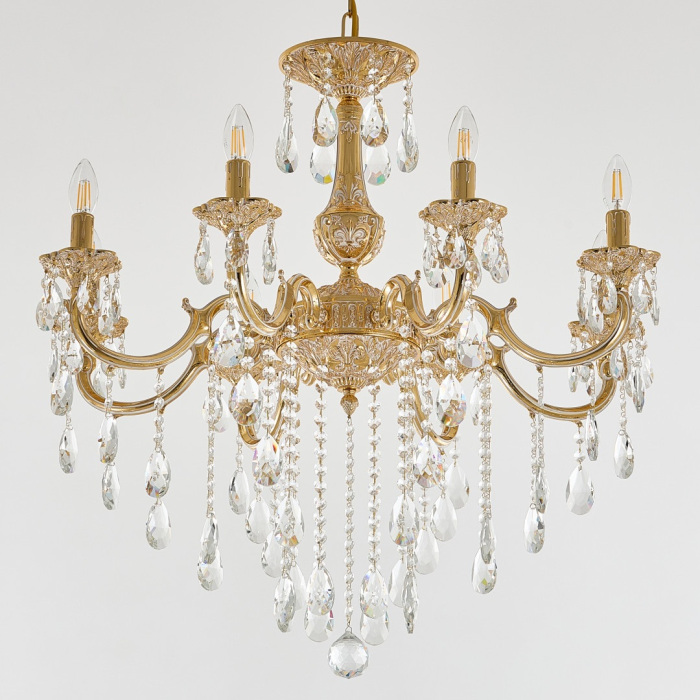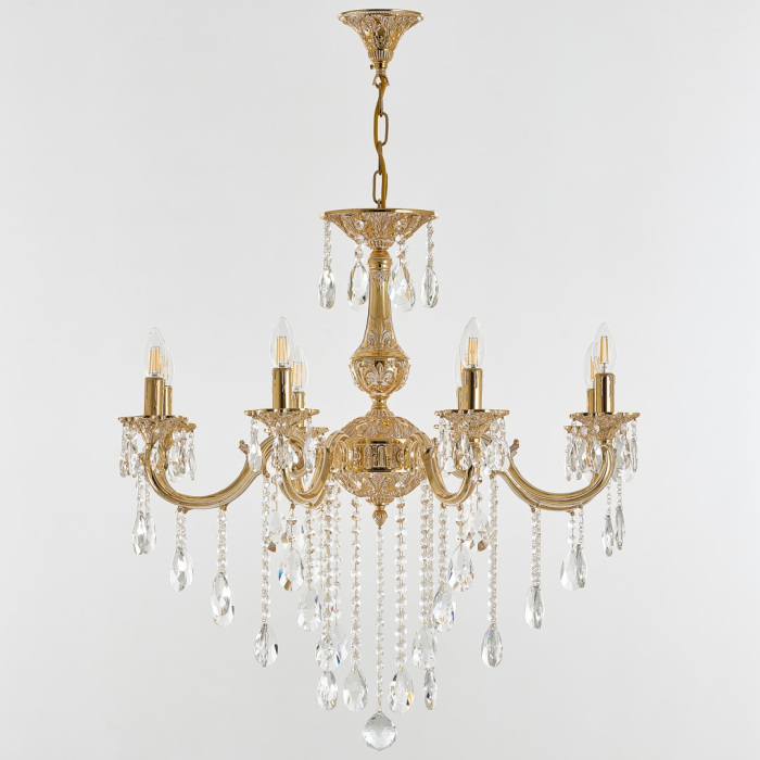 Осветительный прибор выполнен в стиле Классический. Применяются лампы цоколя E14 мощностью 320 Вт, в количестве 8 шт.