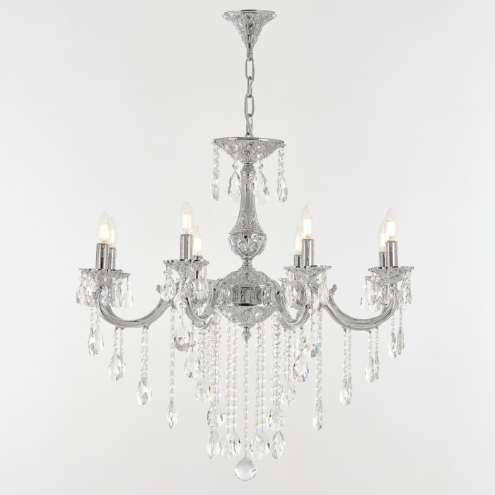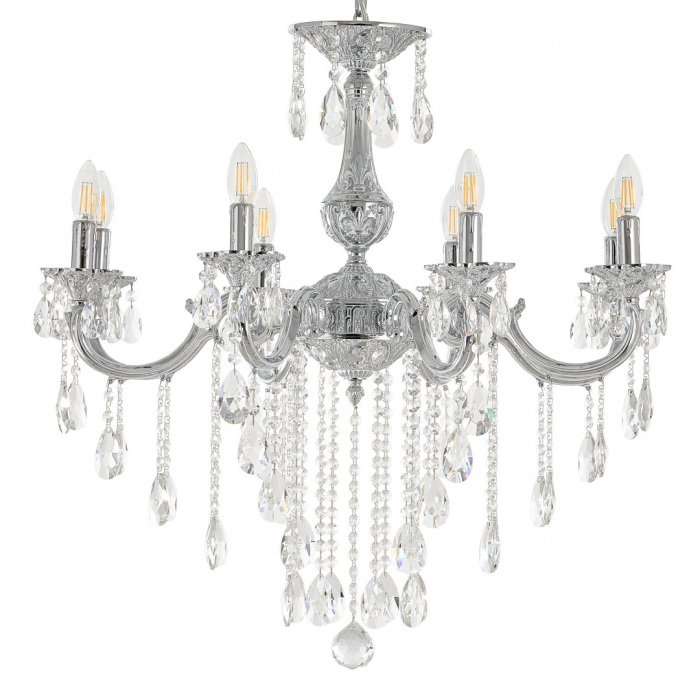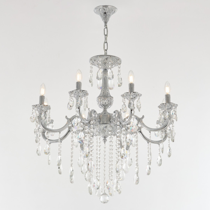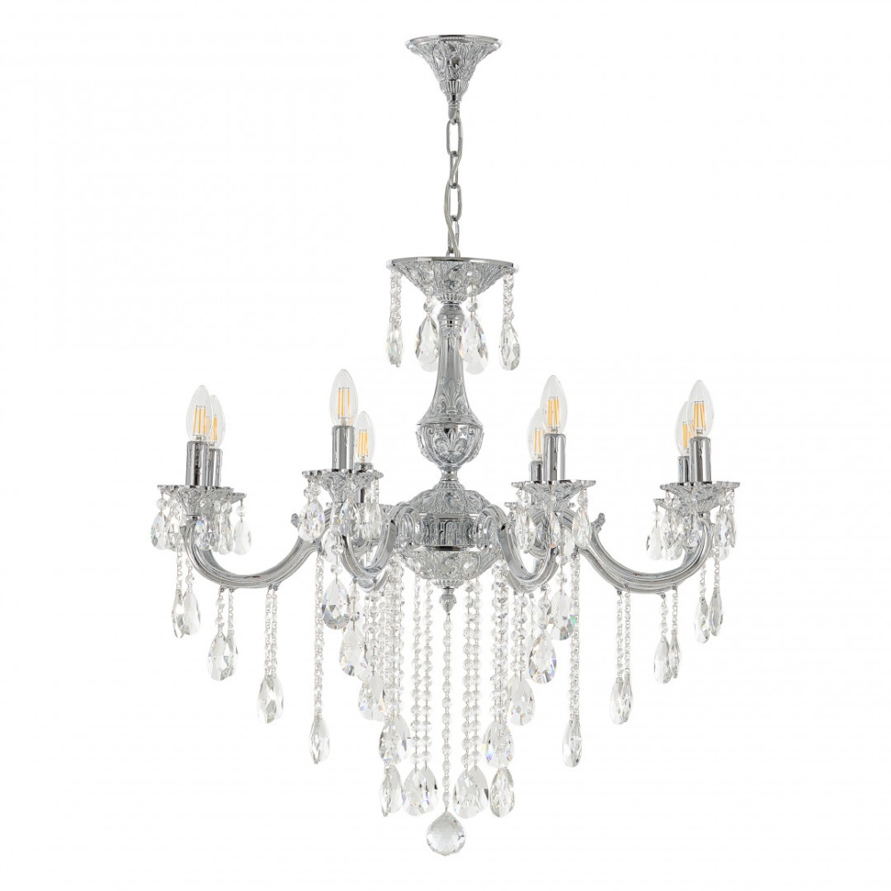 Осветительный прибор выполнен в стиле Классический. Применяются лампы цоколя E14 мощностью 320 Вт, в количестве 8 шт.