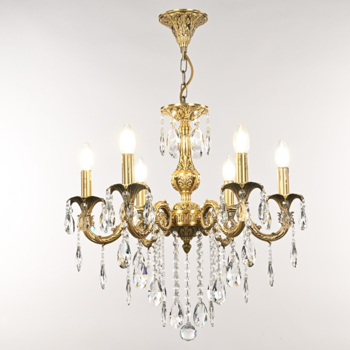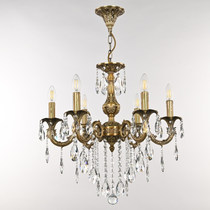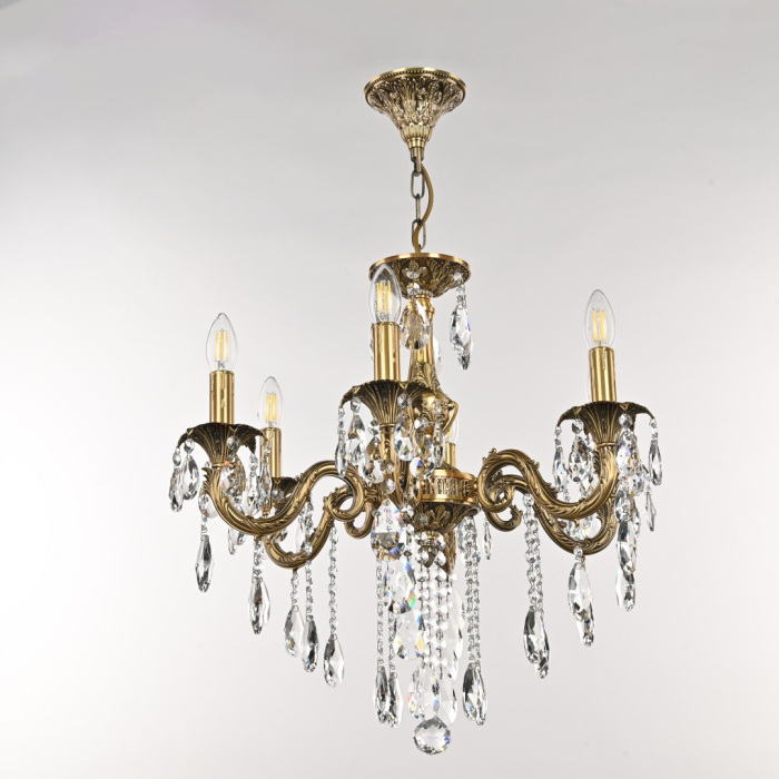 Осветительный прибор выполнен в стиле Классический. Задействуются лампы цоколя E14 мощностью 240 Вт, в количестве 6 шт.