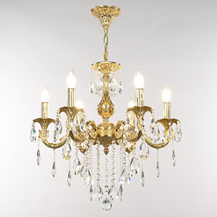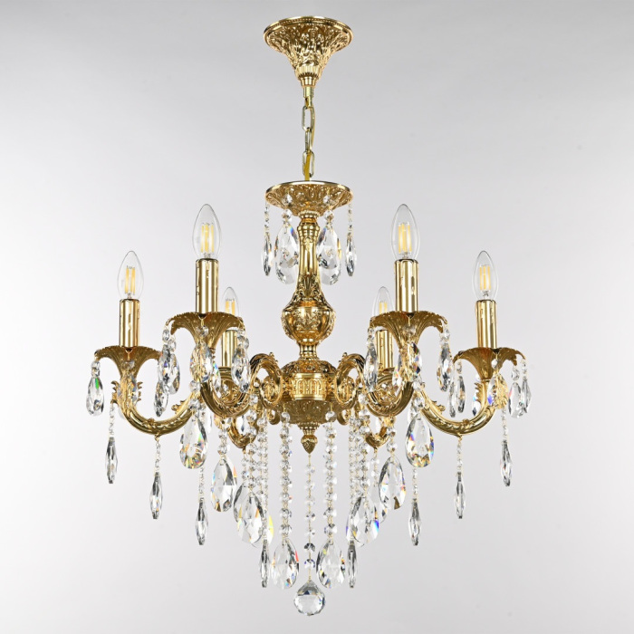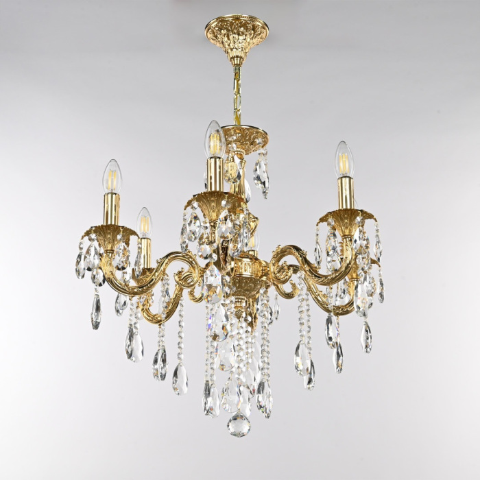 Осветительный прибор сделан в стиле Классический. Используются лампочки цоколя E14 мощностью 240 Вт, в количестве 6 ед.