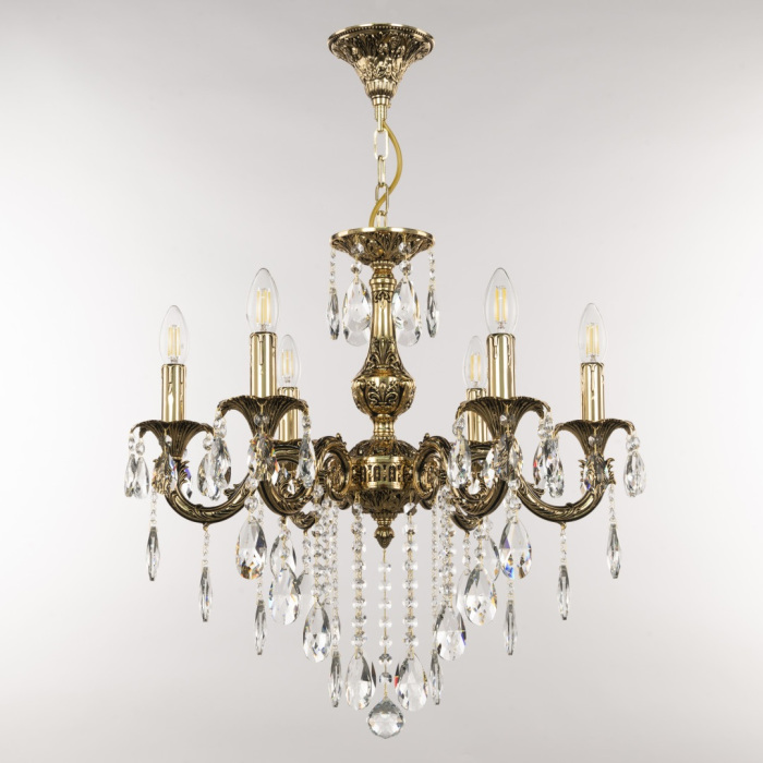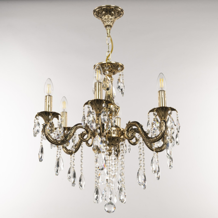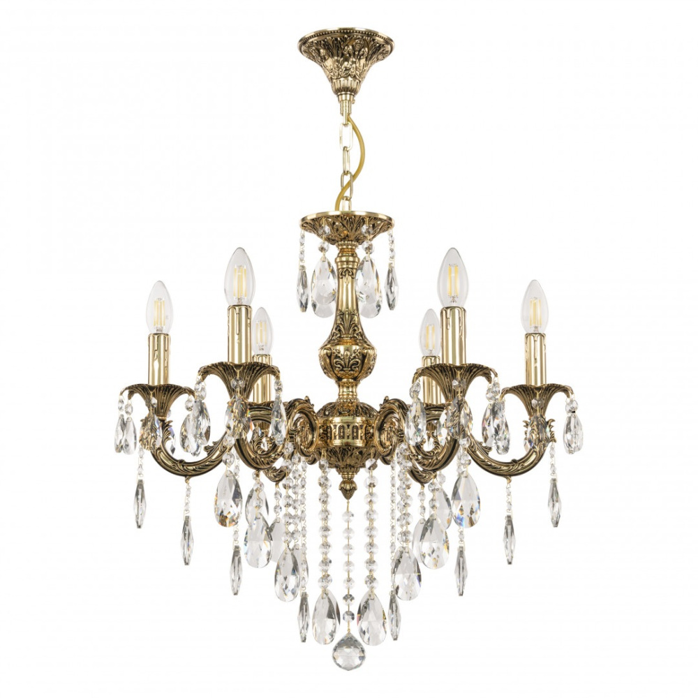 Осветительный прибор выполнен в стиле Классический. Применяются лампы цоколя E14 мощностью 240 Вт, в количестве 6 шт.