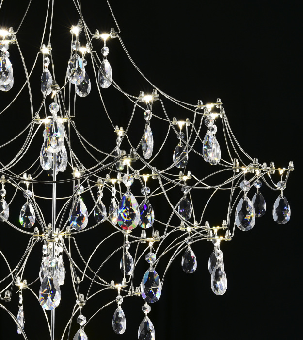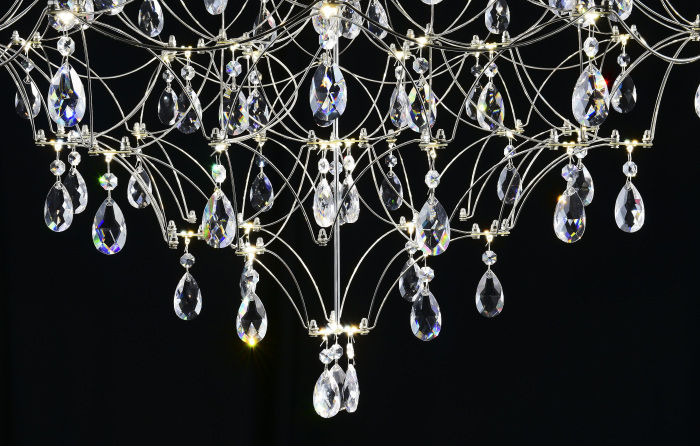 Осветительный прибор выполнен в стиле Арт-Деко. Задействуются лампочки цоколя LED мощностью 33 Вт, количеством 66 шт.