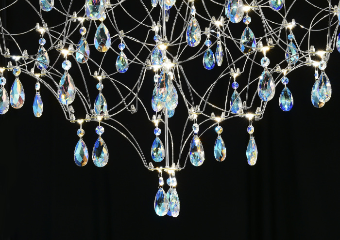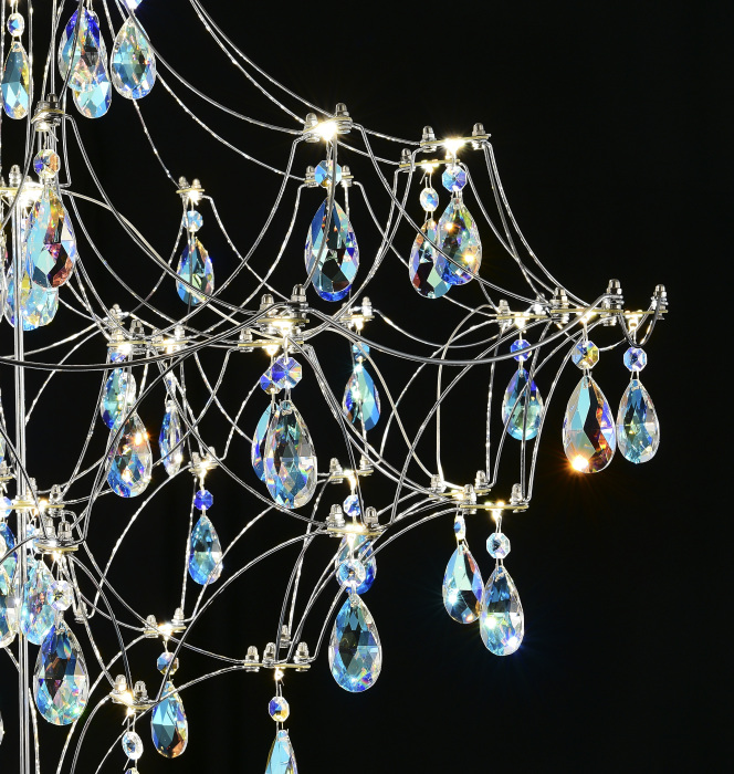 Осветительный прибор сделан в стиле Арт-Деко. Применяются лампочки цоколя LED мощностью 33 Вт, в количестве 66 ед.