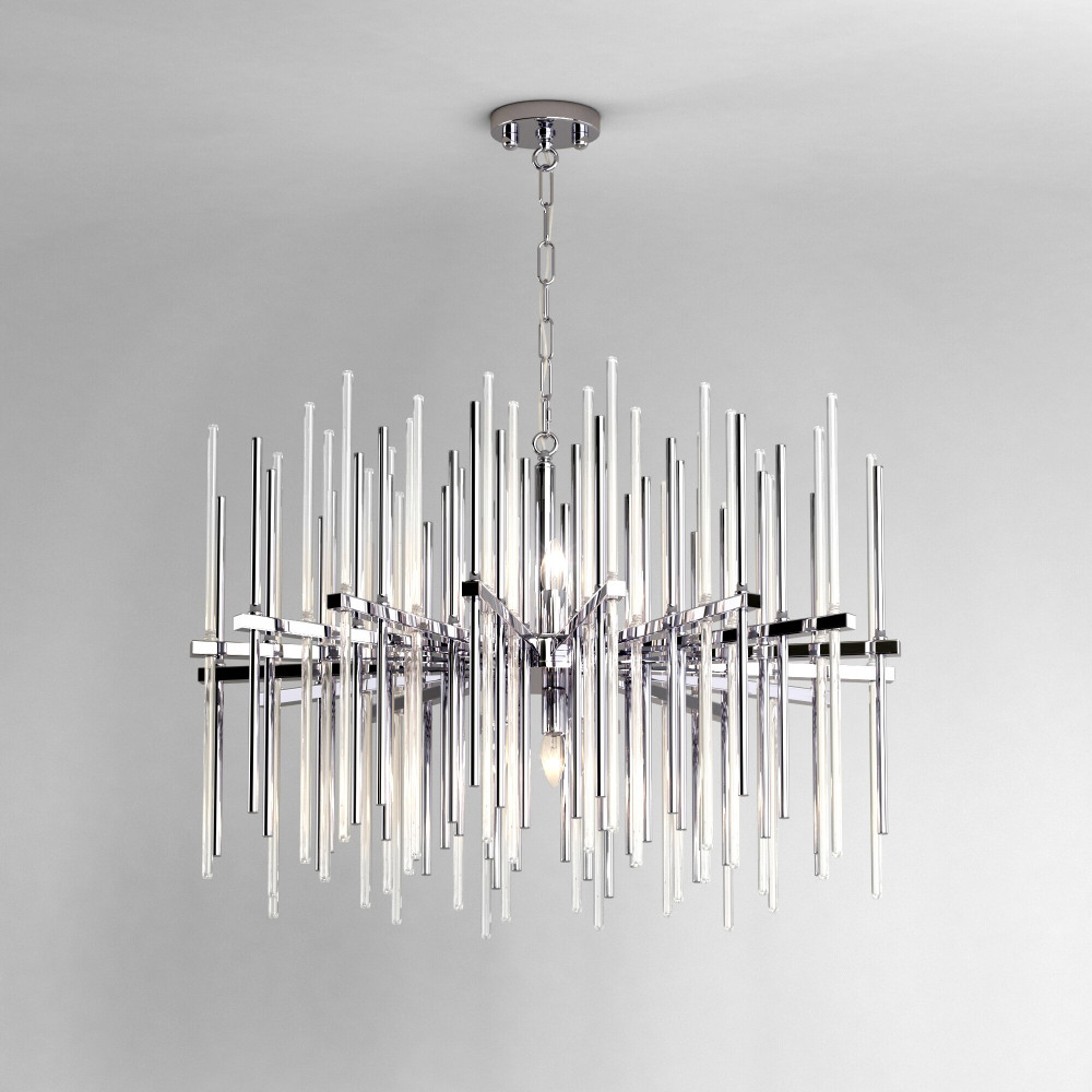 Осветительный прибор выполнен в стиле Модерн. Используются лампочки цоколя E14 мощностью 480 Вт, количеством 8 шт. Цвет модели 355/8 Smart хром: Прозрачный,Хром.