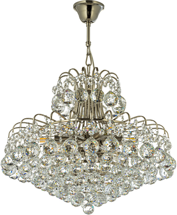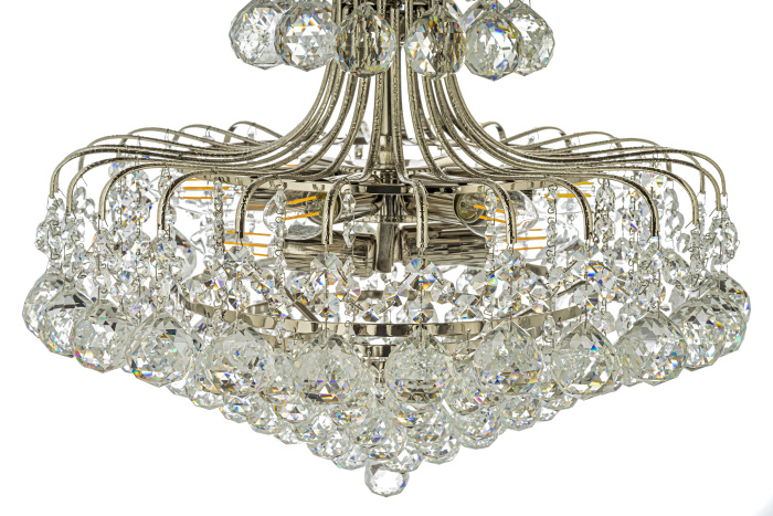 Осветительный прибор сделан в стиле Арт-Деко. Подходят лампочки цоколя E14 мощностью 320 Вт, в количестве 8 ед. Цвет модели Alanno E 1.5.50.100 N: Никель.