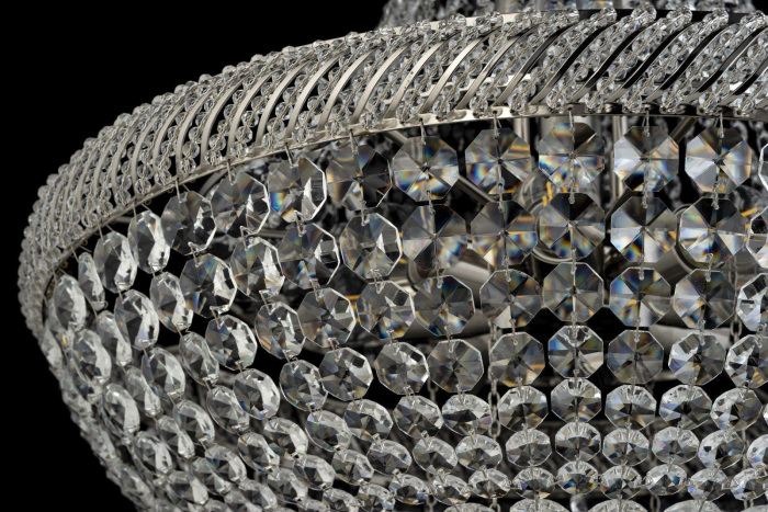 Осветительный прибор создан в стиле Арт-Деко. Применяются лампы с цоколем E27 мощностью 480 Вт, в количестве 8 ед.