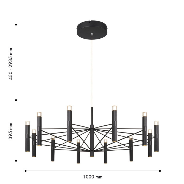 Осветительный прибор выполнен в стиле Модерн. Подходят лампочки с цоколем LED мощностью 91 Вт, в количестве 13 шт.