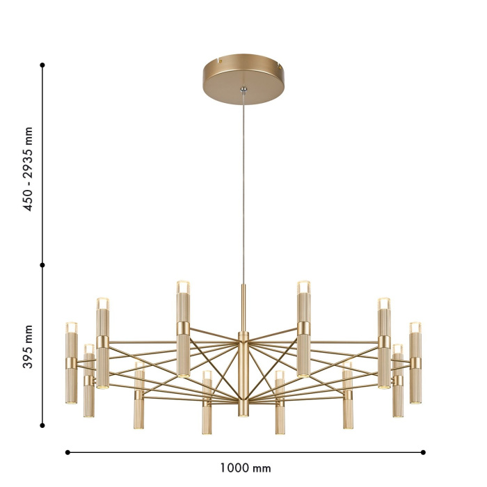 Осветительный прибор создан в стиле Модерн. Используются лампочки с цоколем LED мощностью 91 Вт, количеством 13 ед.