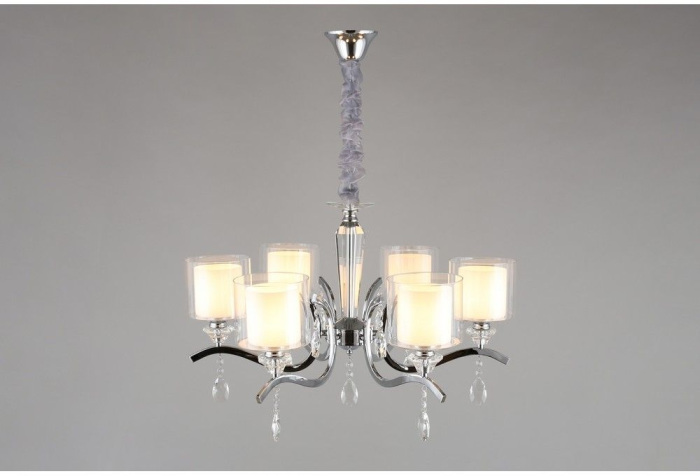 Осветительный прибор разработан в стиле Модерн. Используются лампочки с цоколем E27 мощностью 360 Вт, в количестве 6 шт.