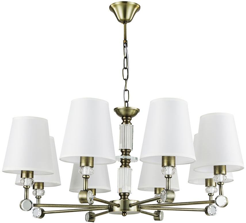 Осветительный прибор выполнен в стиле Классический. Задействуются лампы цоколя E14 мощностью 320 Вт, в количестве 8 шт. Основной цвет модели A4093LM-8AB: Белый.