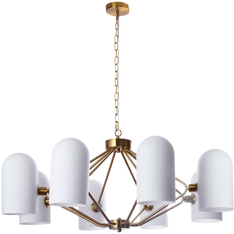 Люстра подвесная A5454LM-8PB производится брендом Arte Lamp и принадлежит коллекции Cassel. Габариты: высота 350 мм, диаметр 860 мм. Люстры Arte Lamp A5454LM-8PB произведены из высококачественных и прочных материалов: металл, плафон - стекло.