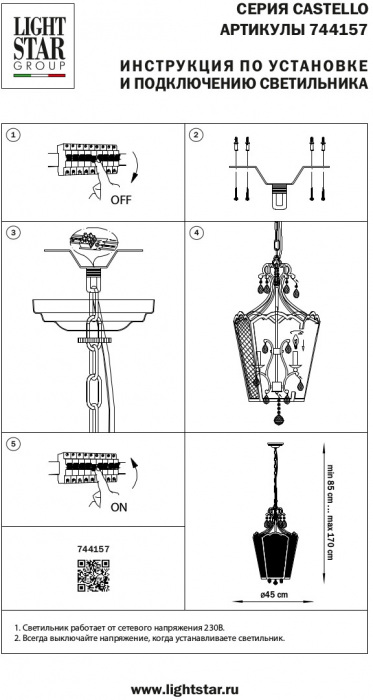 Подвесная люстра Castello 744157 Lightstar черная, итальянская, дизайнерская