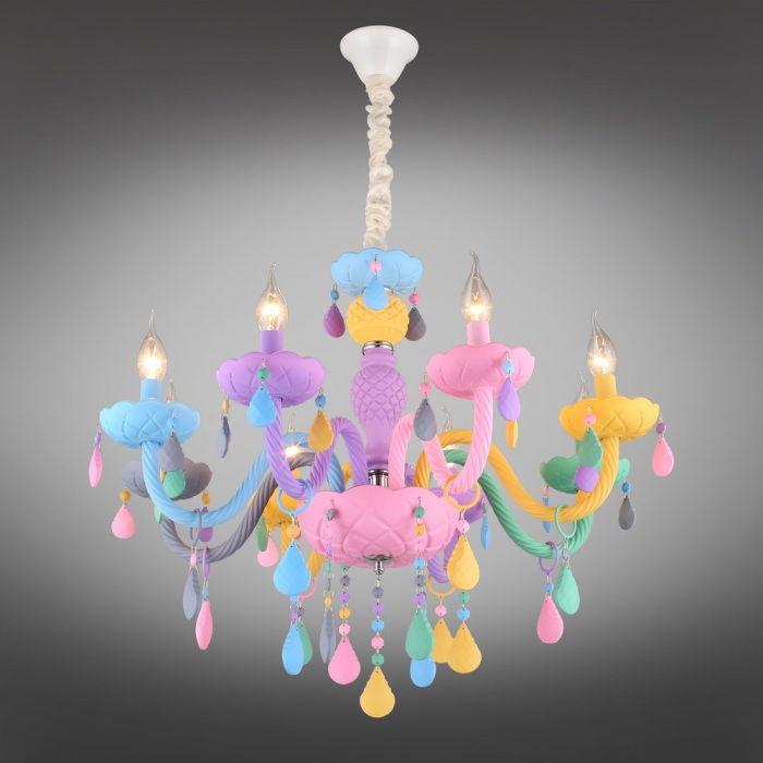Подходят лампочки цоколя E14 мощностью 320 Вт, в количестве 8 ед. Цвет модели OML-65803-08: Голубой,Жёлтый,Разноцветный,Розовый.