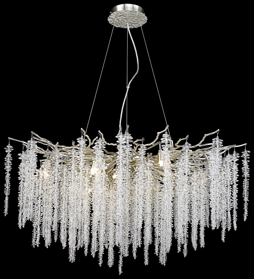 Осветительный прибор сделан в стиле Арт-Деко. Используются лампы с цоколем G9 мощностью 600 Вт, в количестве 15 ед. Цвет модели WE185.15.203: Прозрачный.