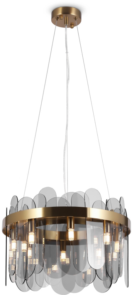 Осветительный прибор сделан в стиле Арт-Деко. Используются лампы с цоколем G9 мощностью 480 Вт, в количестве 8 ед. Цвет модели FR5141PL-08BS2: Серый.