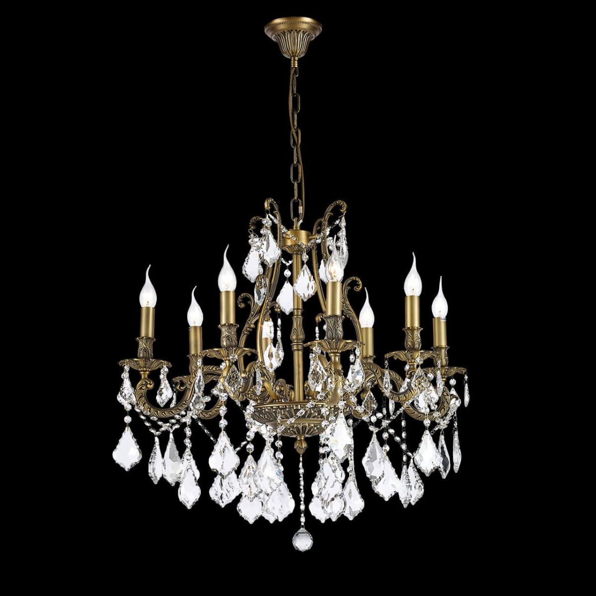 Осветительный прибор выполнен в стиле Барокко. Используются лампы с цоколем E14 мощностью 320 Вт, количеством 8 шт. Цвет модели Barolo E 1.1.8.600 A: Бронза.