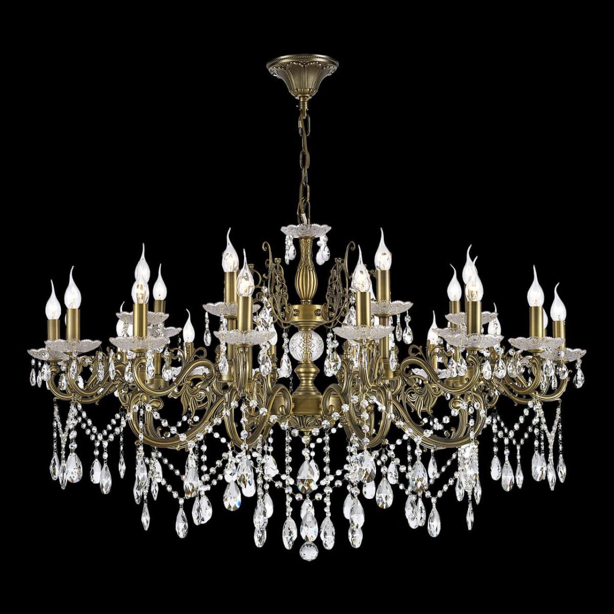 Осветительный прибор создан в стиле Барокко. Применяются лампочки цоколя E14 мощностью 960 Вт, в количестве 24 ед. Цвет модели Colzano E 1.1.24.600 A: Бронза.