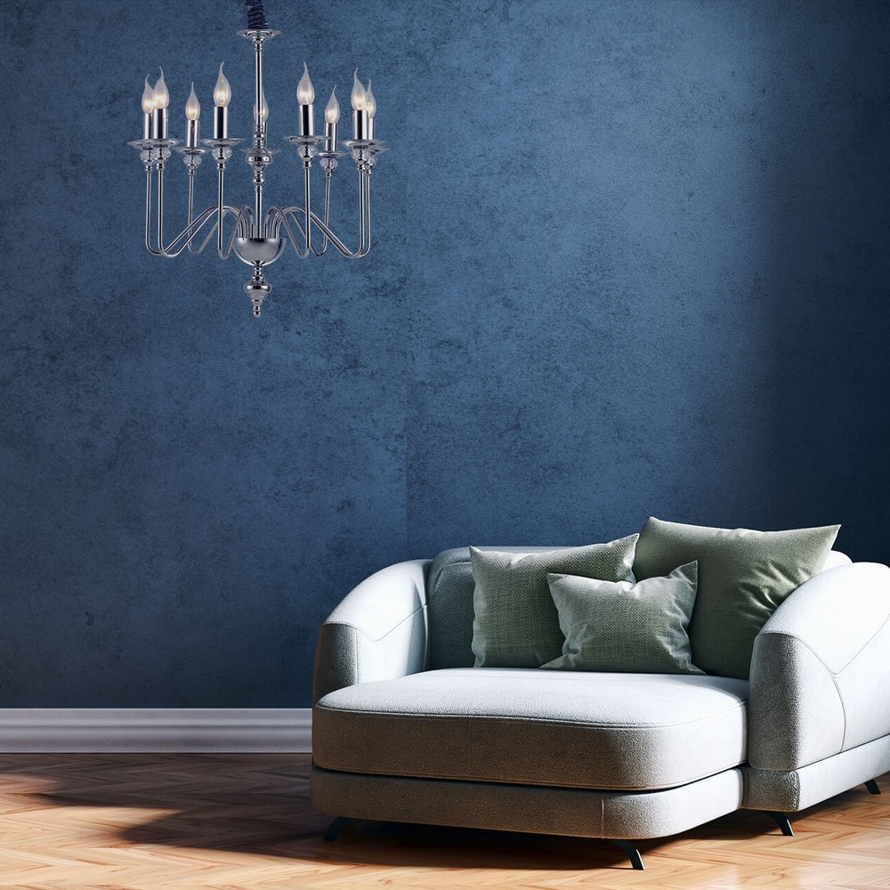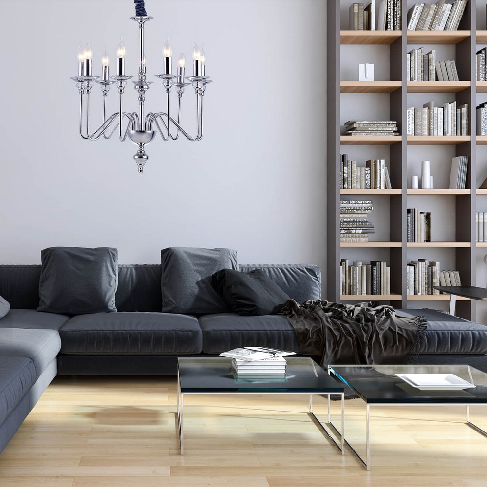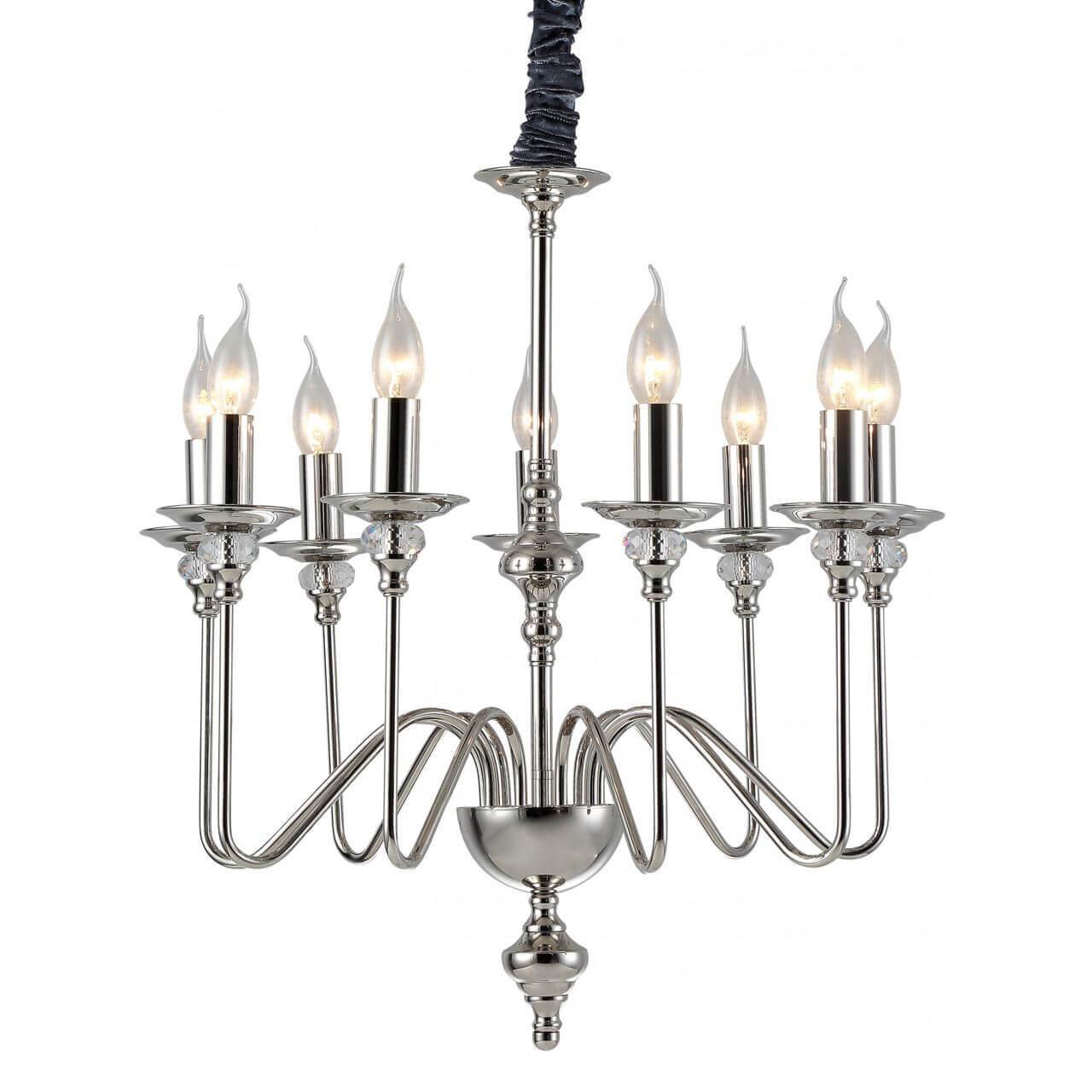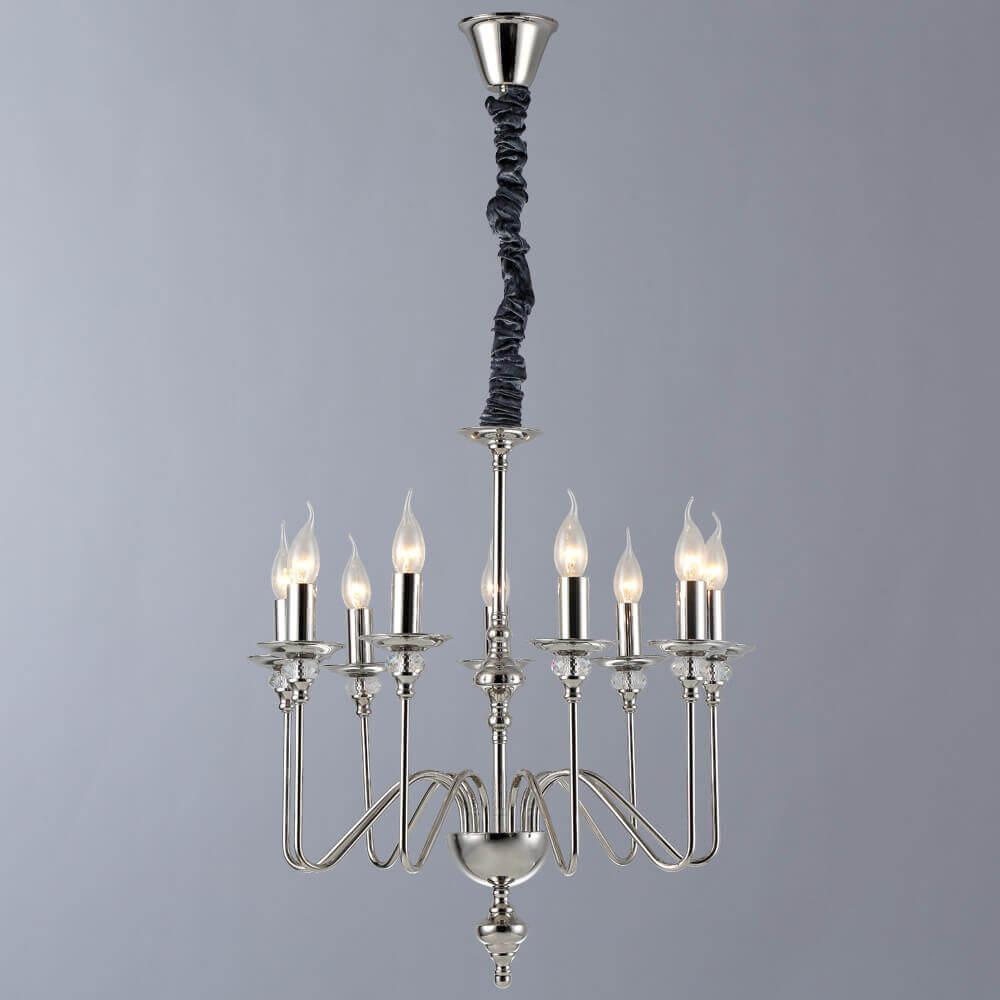 Осветительный прибор сделан в стиле Модерн. Используются лампы цоколя E14 мощностью 540 Вт, количеством 9 ед. Основной цвет модели 1021/02 LM-9: Хром.