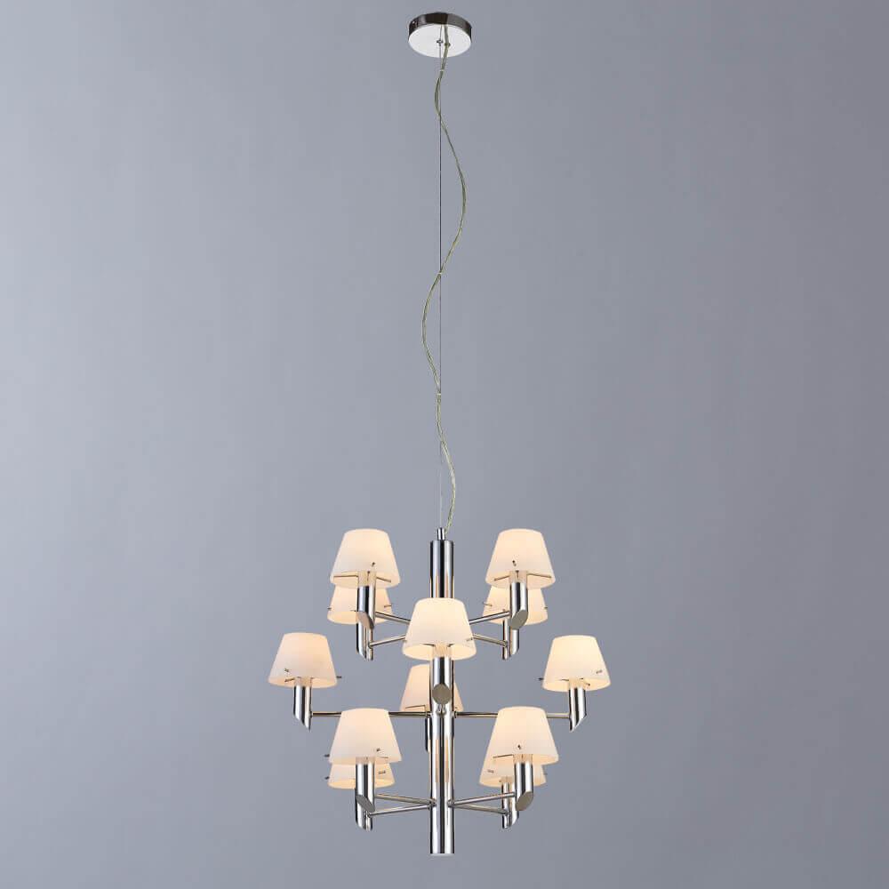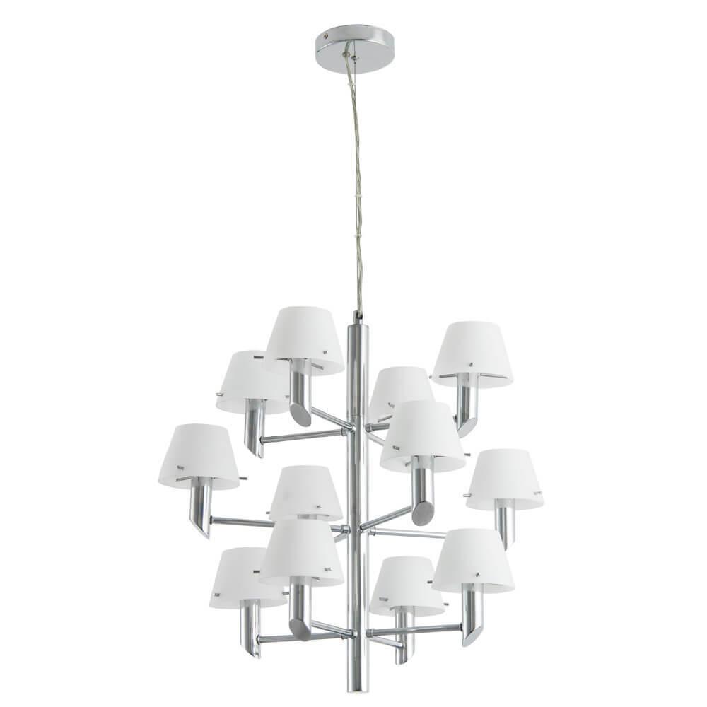 Осветительный прибор сделан в стиле Хай-тек. Используются лампочки цоколя E14 мощностью 720 Вт, в количестве 12 ед. Цвет модели 1680/02 LM-12: Белый.