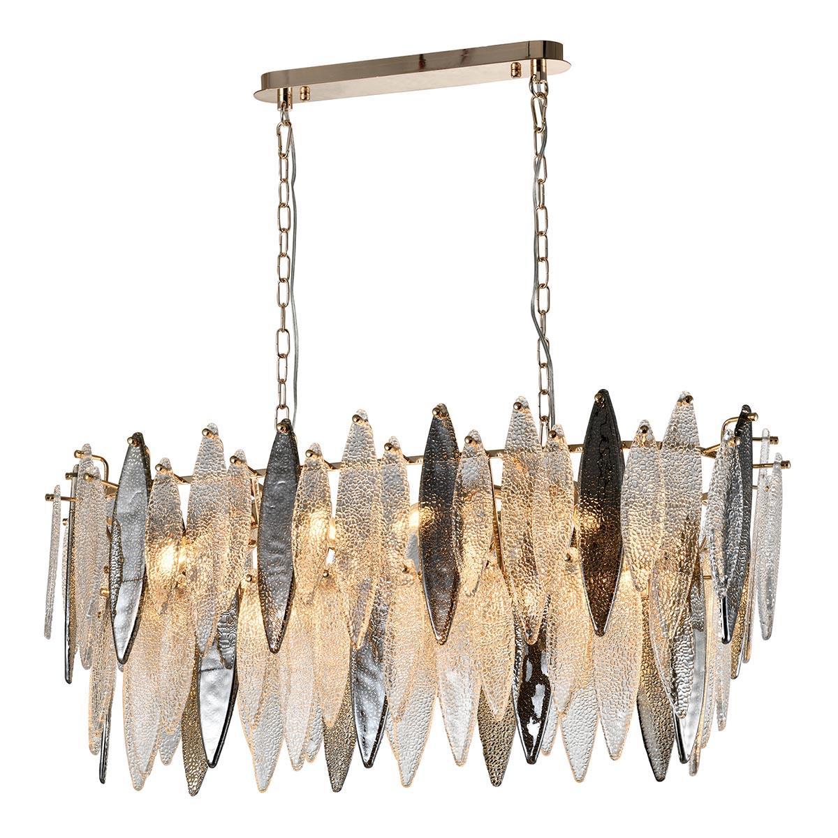 Осветительный прибор разработан в стиле Американский. Задействуются лампы с цоколем E14 мощностью 400 Вт, в количестве 10 ед. Цвет модели P2543-10 GD: Прозрачный,Серый.