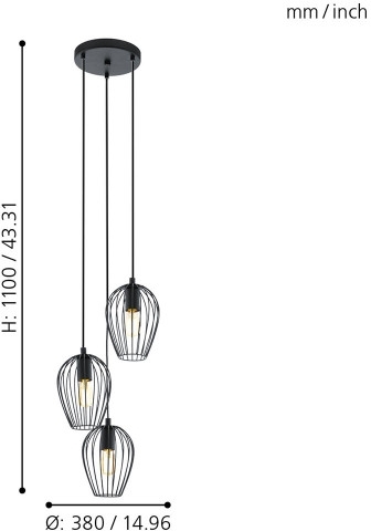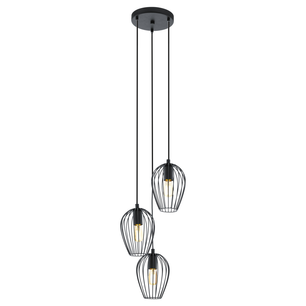 Осветительный прибор выполнен в стиле Лофт. Применяются лампочки с цоколем E27 мощностью 180 Вт, в количестве 3 шт. Основной цвет модели 49479: Чёрный.