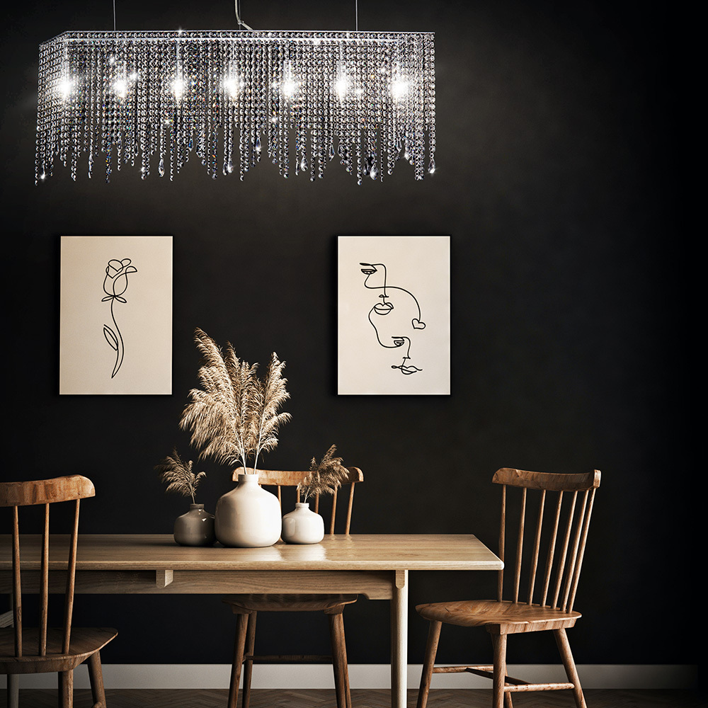Осветительный прибор разработан в стиле Арт-Деко. Применяются лампы с цоколем E14 мощностью 420 Вт, в количестве 7 ед. Цвет модели DIA002PL-07CH: Хром.