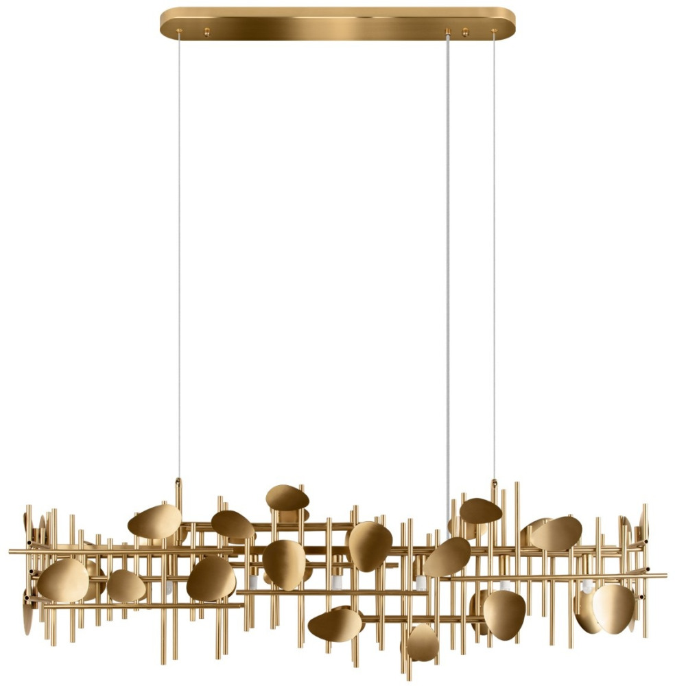 Осветительный прибор разработан в стиле Дизайнерский. Применяются лампы цоколя G9 мощностью 30 Вт, в количестве 6 шт. Основной цвет модели 10396/1200R: Золотой.