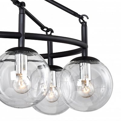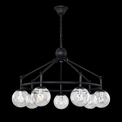 Осветительный прибор сделан в стиле Контемпорари. Используются лампы цоколя E14 мощностью 420 Вт, количеством 7 ед. Основной цвет модели 2169-7P: Чёрный.