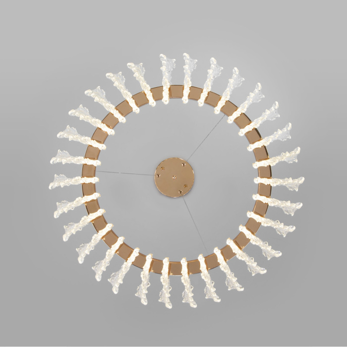 Осветительный прибор сделан в стиле Арт-Деко. Применяются лампочки цоколя LED мощностью 50 Вт.