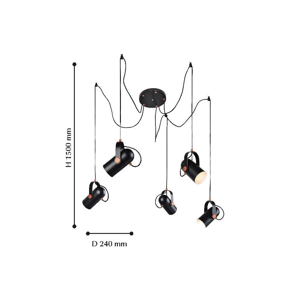 Осветительный прибор создан в стиле Дизайнерский. Применяются лампочки с цоколем E14 мощностью 200 Вт, количеством 5 ед. Основной цвет модели 2007-5P: Чёрный.