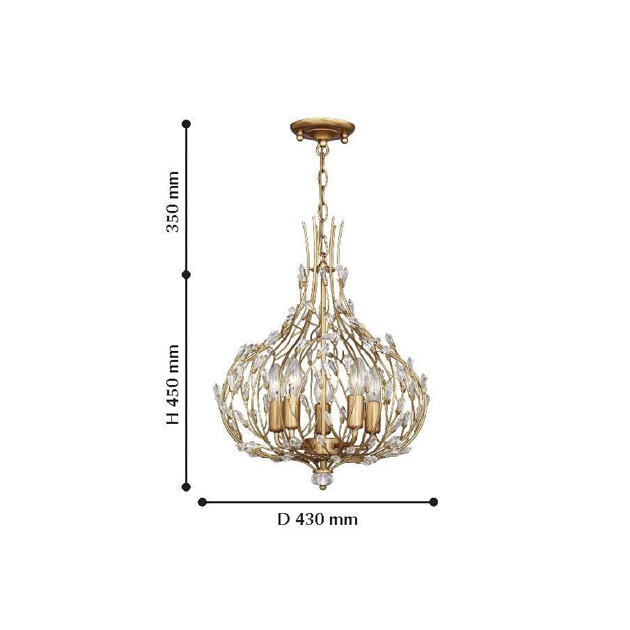 Осветительный прибор создан в стиле Американский. Используются лампочки с цоколем E14 мощностью 200 Вт, в количестве 5 шт. Основной цвет модели 2020-5P: Золотой.