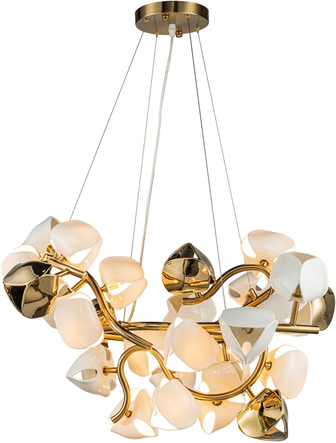 Осветительный прибор создан в стиле Флористический. Применяются лампы с цоколем G4 мощностью 75 Вт, количеством 15 шт. Цвет модели LSP-8909: Белый,Бронза.