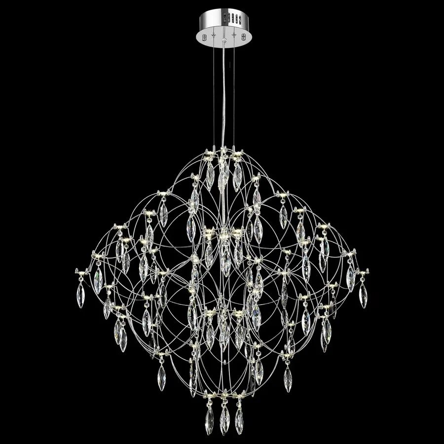 Осветительный прибор сделан в стиле Арт-Деко. Задействуются лампочки цоколя LED мощностью 78 Вт, в количестве 78 ед.