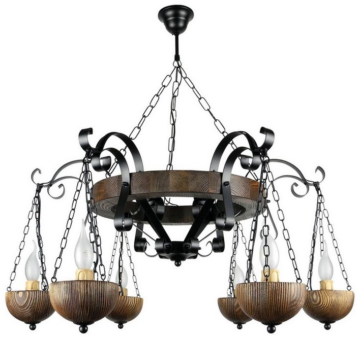 Осветительный прибор создан в стиле Кантри. Используются лампы цоколя E14 мощностью 240 Вт, в количестве 6 шт. Основной цвет модели Фиджи-6: Коричневый.