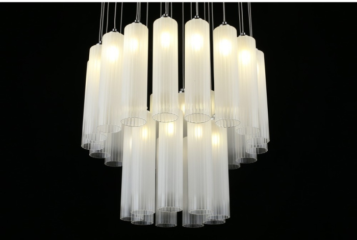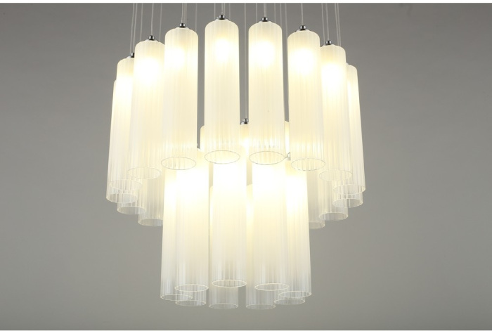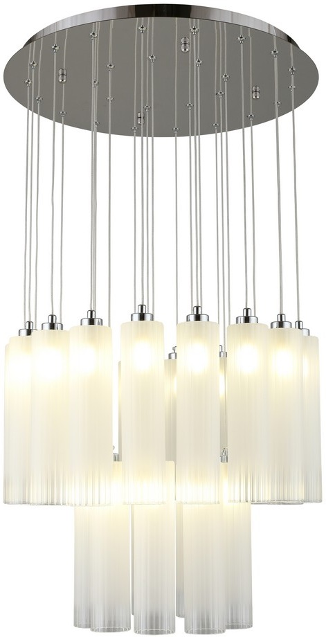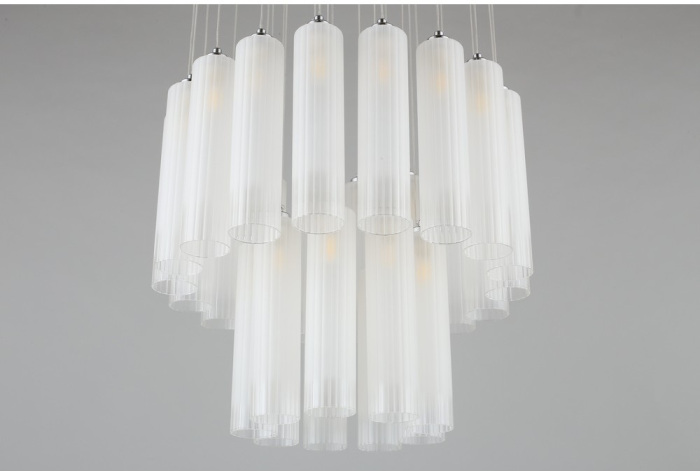 Осветительный прибор разработан в стиле Модерн. Задействуются лампы с цоколем G9 мощностью 81 Вт, в количестве 27 ед. Цвет модели APL.859.06.27: Белый.