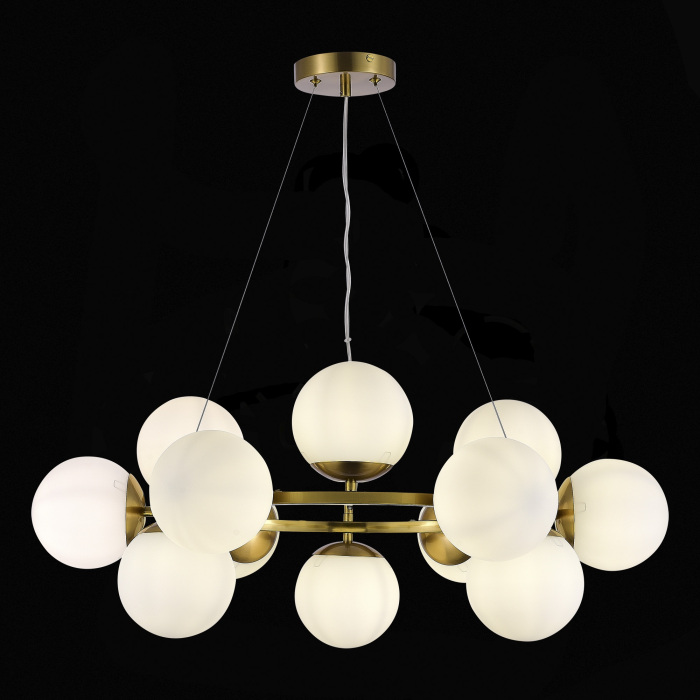 Осветительный прибор создан в стиле Модерн. Применяются лампы цоколя E27 мощностью 720 Вт, в количестве 12 шт.
